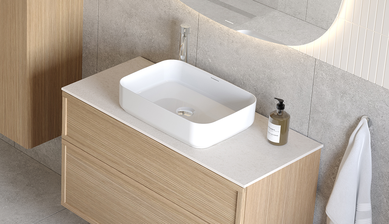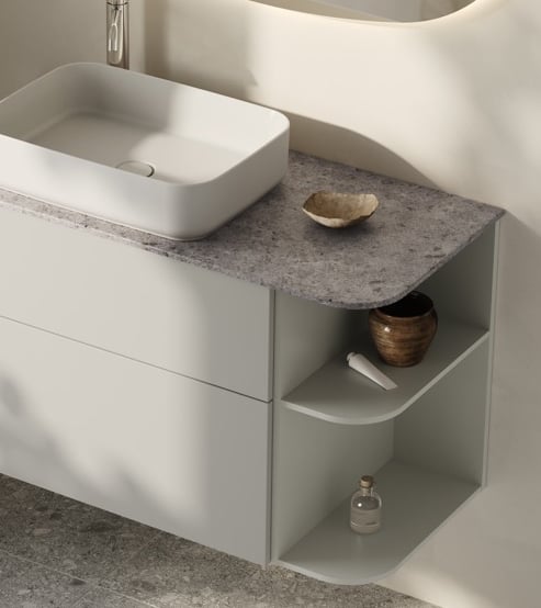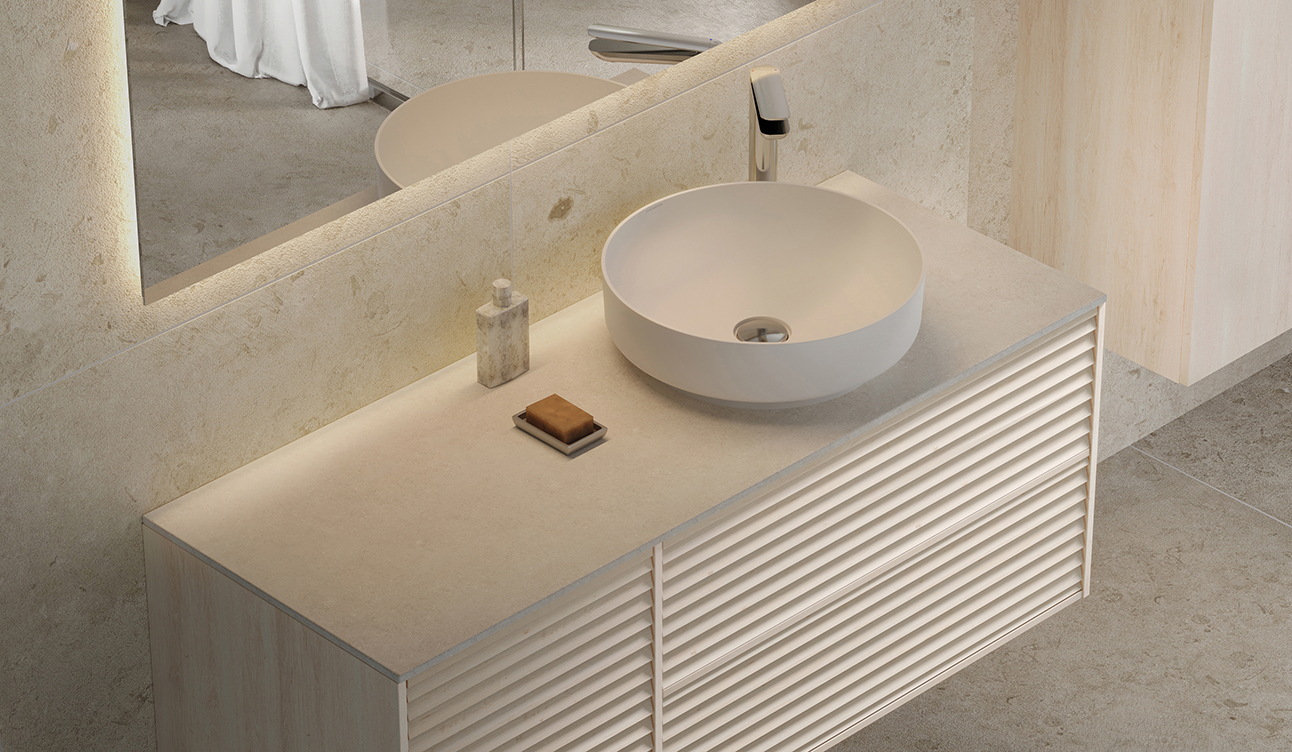 Porcelain granite countertops give you the opportunity to shape the expression of your bathroom. Their natural tones and Scandinavian character make it easy to find a style that suits your home. With a variety of colours and patterns, you can elevate the furniture and create a calm, harmonious, and timeless impression.